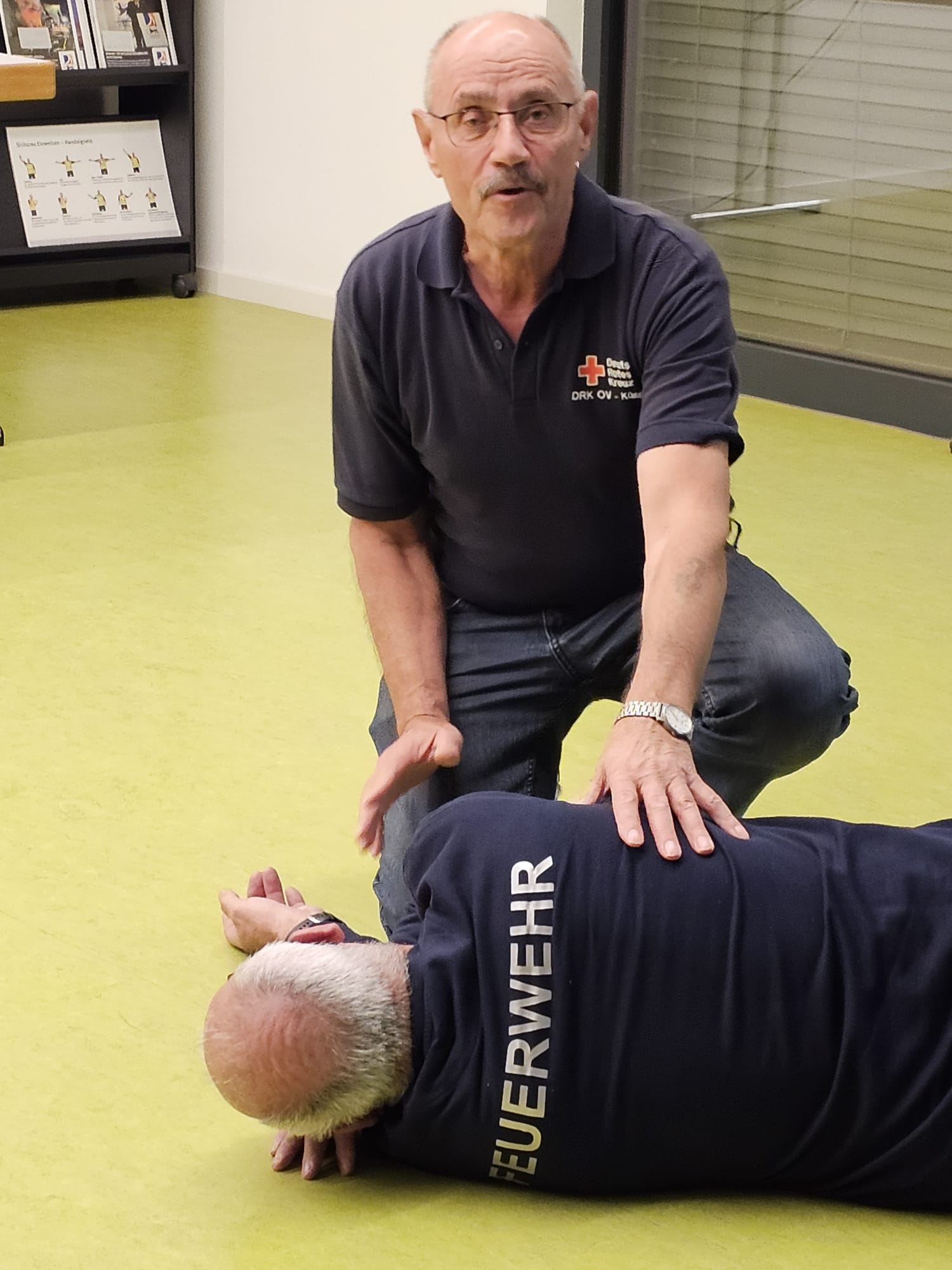 Am 20.03.2026 wurde im Gerätehaus Rheinheim in Zusammenarbeit mit dem DRK-Ortsverein, Hr. Walter Probst ein Auffrischungskurs mit interessanten Themen für 27 anwesende Senioren durchgeführt. Theoretische Präsentation von Themen mit Beispielen aus der Praxis der Rettungskräfte waren: Notfallnummern, absetzen vom Notruf, Funktionsweise der Rettungskette, Sofortmaßnahmen bei Unfällen im häuslichen Bereich oder im Straßenverkehr, Behandeln von Blutungen / Druckverband, stabile Seitenlage, Info zu Verhalten bei Verdacht auf einen Herzinfarkt, Anzeichen für Schlaganfall, allergische Reaktionen z.B. nach Wespenstich