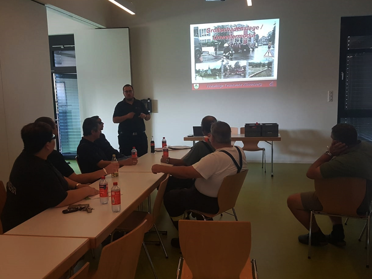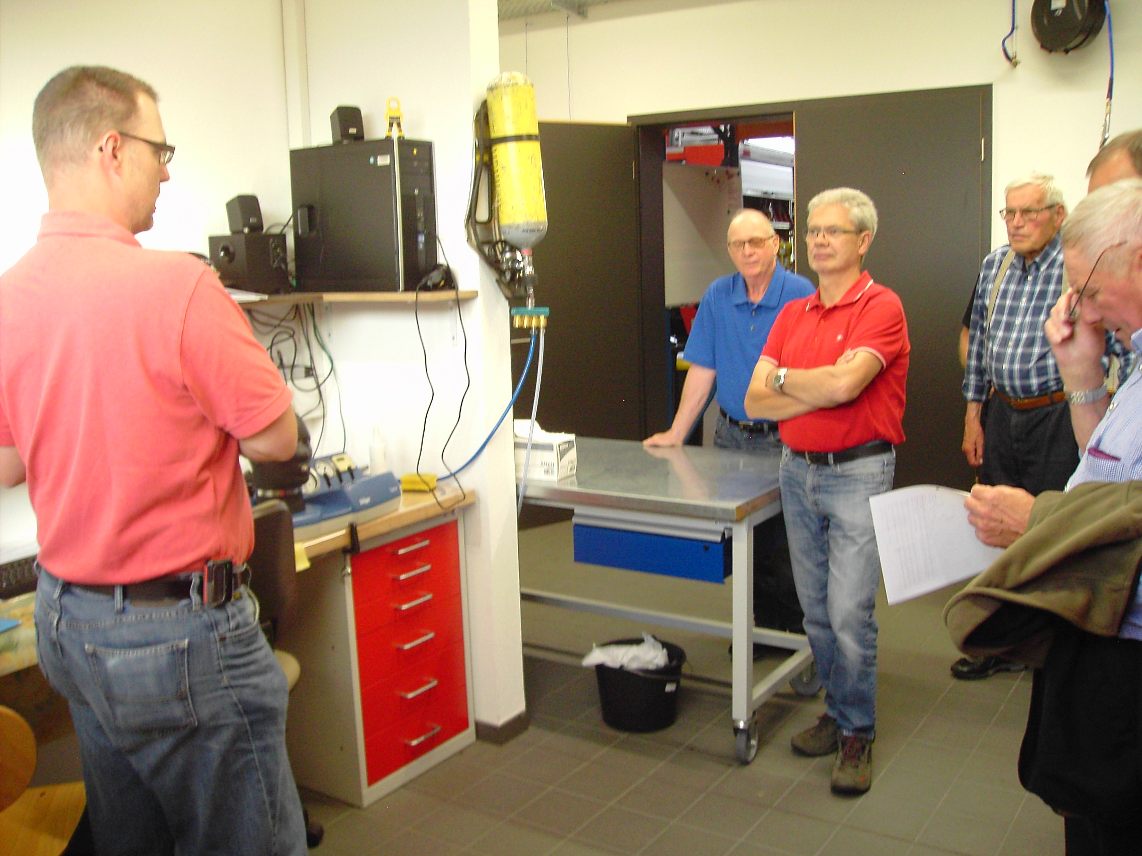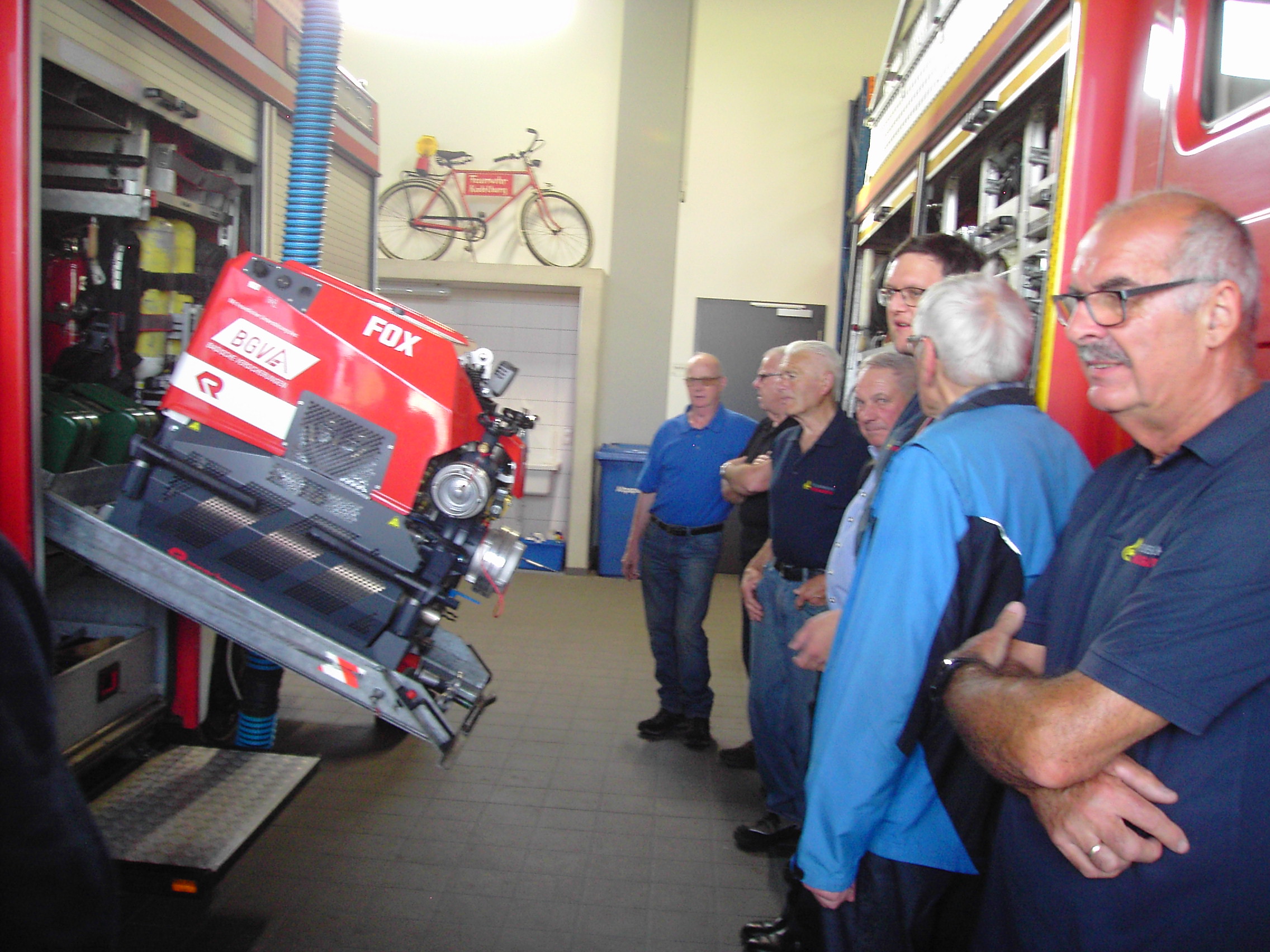 Zu einer gemeinsamen “Probe“ der Altersabteilung unserer Gesamtwehr trafen sich zehn altgediente Feuerwehrmänner mit einigen Aktiven, unter der Leitung des stellv. Kommandanten Martin Morath, im neuen Gerätehaus im Gemeindezentrum. Solche “Proben“ sollen den älteren Kameraden unter Anderem zeigen über welche neue Ausrüstung die Wehr verfügt, welche neuen Aufgaben zu bewältigen sind und wie sich die Wehr in den heutigen Zeiten organisieren muss, um alle gestellten Anforderungen zu bewältigen. Im Speziellen war der GWT das Fahrzeug welches uns detailliert vorgestellt wurde. Die fest verlastete Beladung des Fahrzeugs wurde gezeigt und erklärt, sowie die verschiedensten Möglichkeiten der Beladung auf der Fahrzeugpritsche mit den vorhandenen wechselbaren Roll-Containern aufgezeigt. Diese rollbaren Container werden je nach Einsatzart – Verkehrsunfall, Schmutzwasseranfall, Reinigung von kontaminierten Straßen und Plätzen, etc. - verladen und zum Einsatzort gebracht. Im Weiteren war die Atemschutzwerkstatt unser Ziel, wo man uns die neuen Einrichtungen für Reinigung, Wartung und Unterhalt der Atemschutzmasken erklärte. Mit der beschafften Waschmaschine und der Trocknungseinrichtung für die überprüften Masken können nun die Zeiten für die Unterhaltsarbeiten drastisch reduziert werden, was den Atemschutz-Geräteprüfern natürlich sehr entgegen kommt. Ein Hock mit Gesprächen bei Bier und heißen Grillwürsten rundete den informativen Abend im Gerätehaus ab. Ein Dank an Alle die sich für uns etwas haben einfallen lassen, sich die Zeit genommen haben etwas vorzubereiten und durchzuführen.