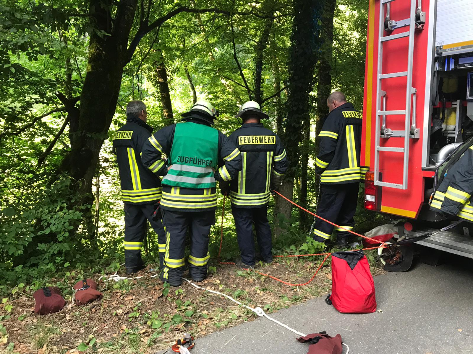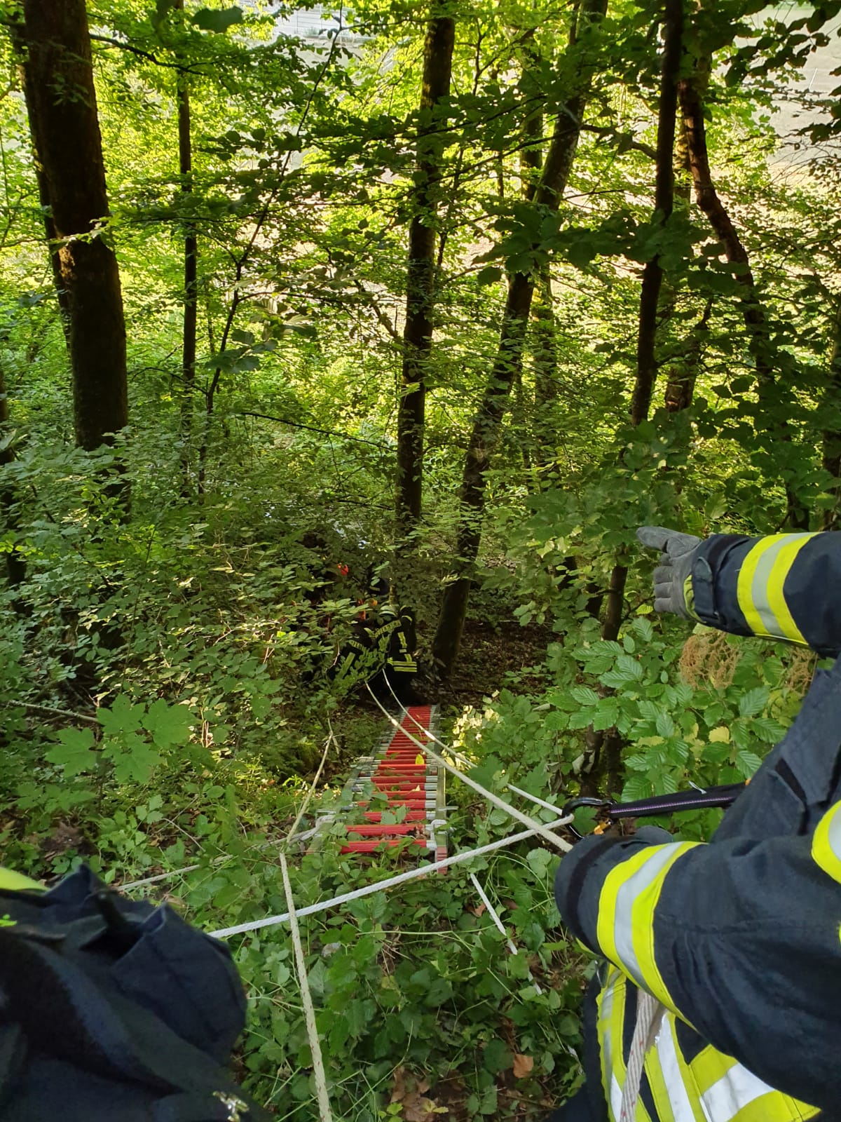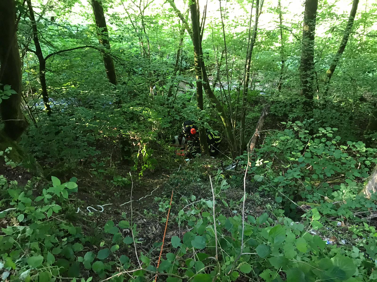 ... so lautete das Einsatzstichwort zur Übung der Abteilung Ost. An einem steilen, bewaldeten Hang mussten sich die Kameraden zuerst einen Zugang zur verunfallten Person schaffen, bevor diese über einen zweiten Rettungsweg zurück auf die Straße gebracht werden konnte. Schwerpunkte dieser Übung war der richtige Umgang mit den Gerätschaften zur Absturzsicherung, das sichere Bewegen in unwegsamen Gelände, eine patientenschonende Rettung mit Hilfe der Schleifkorbtrage und schließlich auch eine korrekte Einsatzstellenabsicherung auf stark befahrenen Straßen. Vielen Dank an unsere Kameraden M. Jehle für die Einweisung sowie K. Klauser und G. Roder für die Ausarbeitung dieser spannenden Probe!