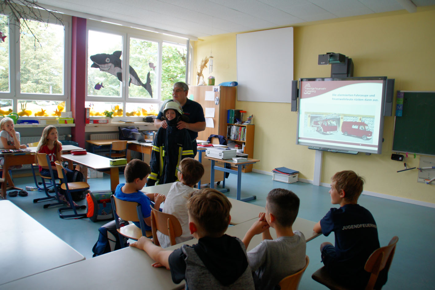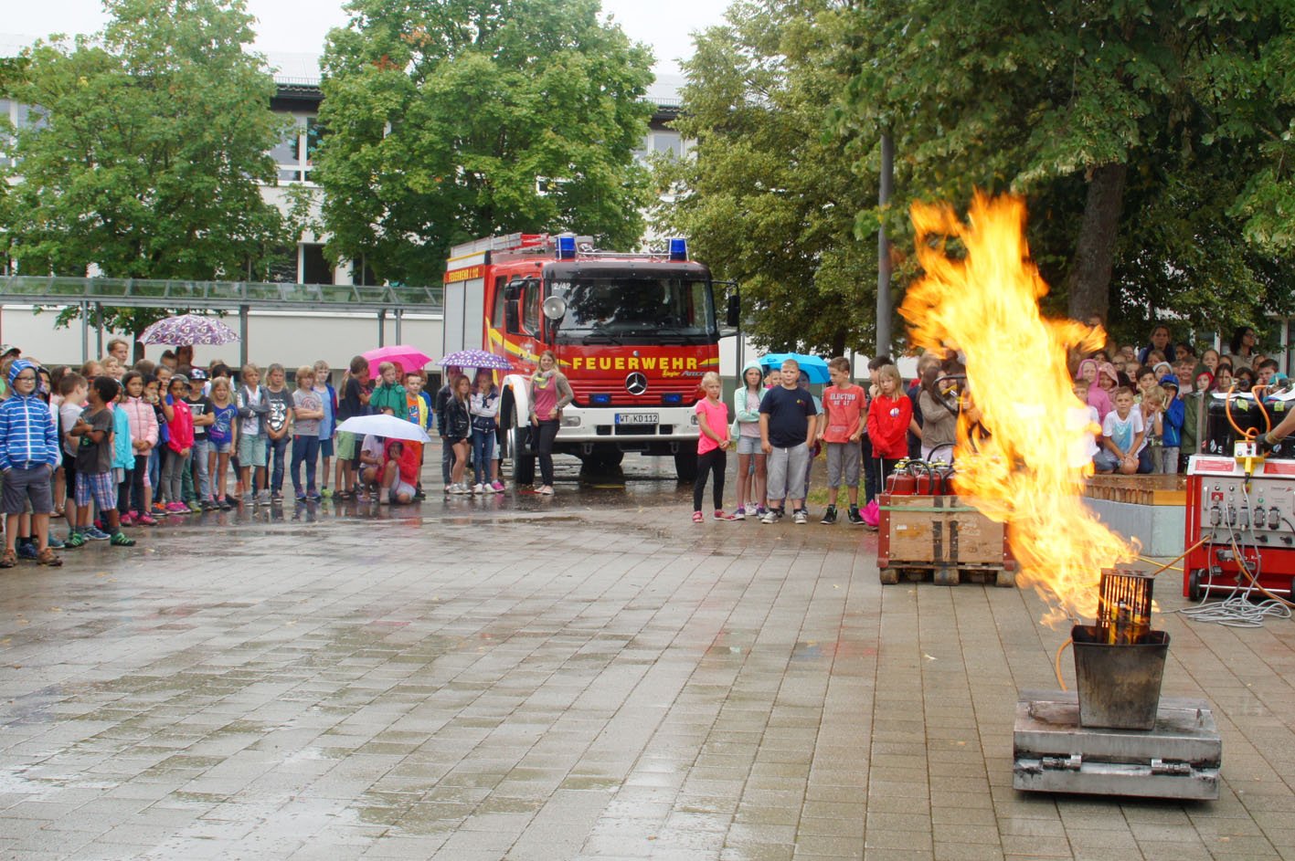 Das Highlight bildete allerdings der Teil mit den Feuerwehrkameraden aus Bad Zurzach, die lautstark Spraydosen zur Explosion brachten. Unter großem Applaus ihrer gesamten Schülerschaft durften abschließend auch die Lehrerinnen selbst Hand anlegen und den Umgang mit Löschdecke und Feuerlöscher üben. Alle Beteiligten, sowohl die Schüler und Lehrer von der Grundschule als auch die Feuerwehrausbilder, hatten großen Spaß an diesem Tag.