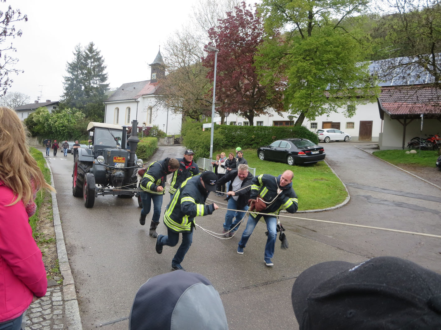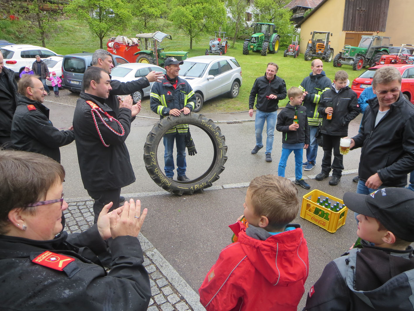 Dem Wetter zum Trotz freuten sich die Küβnacher über die vielen Besucher am 1. Maihock. «Viele Stammgäste schätzen einfach die Qualität unserer Festküche mit Fleisch vom örtlichen Hofladen, selbstgemachtem Kartoffelsalat, Küβnacher Bärlauchbutter und das Bier vom Fass. Nicht zu vergessen die grosse Auswahl an Kuchen in der Kaffeestube der Landfrauen» sagte Florian Angstmann, Kommandant der Feuerwehr Küβnach. So fand man unter den Gästen dann auch nicht nur viele Bürger und Vertreter der Gemeinde Küssaberg, wie zum Beispiel Herrn Bürgermeister Weber mit seiner Frau, sondern auch viele Besucher aus umliegenden Gemeinden wie auch aus der Schweizerischen Partnergemeinde Küssnacht am Rigi. Zum ersten mal wurde der Wettbewerb im «Tractor-Pulling» durchgeführt, den die Feuerwehr aus der Partnergemeinde für sich entscheiden konnte. Die spontan gebildete Jugendgruppe aus Dangstetten schaffte fast die gleiche Strecke wie die «Grossen» und erhielt dafür einen Sonderpreis.