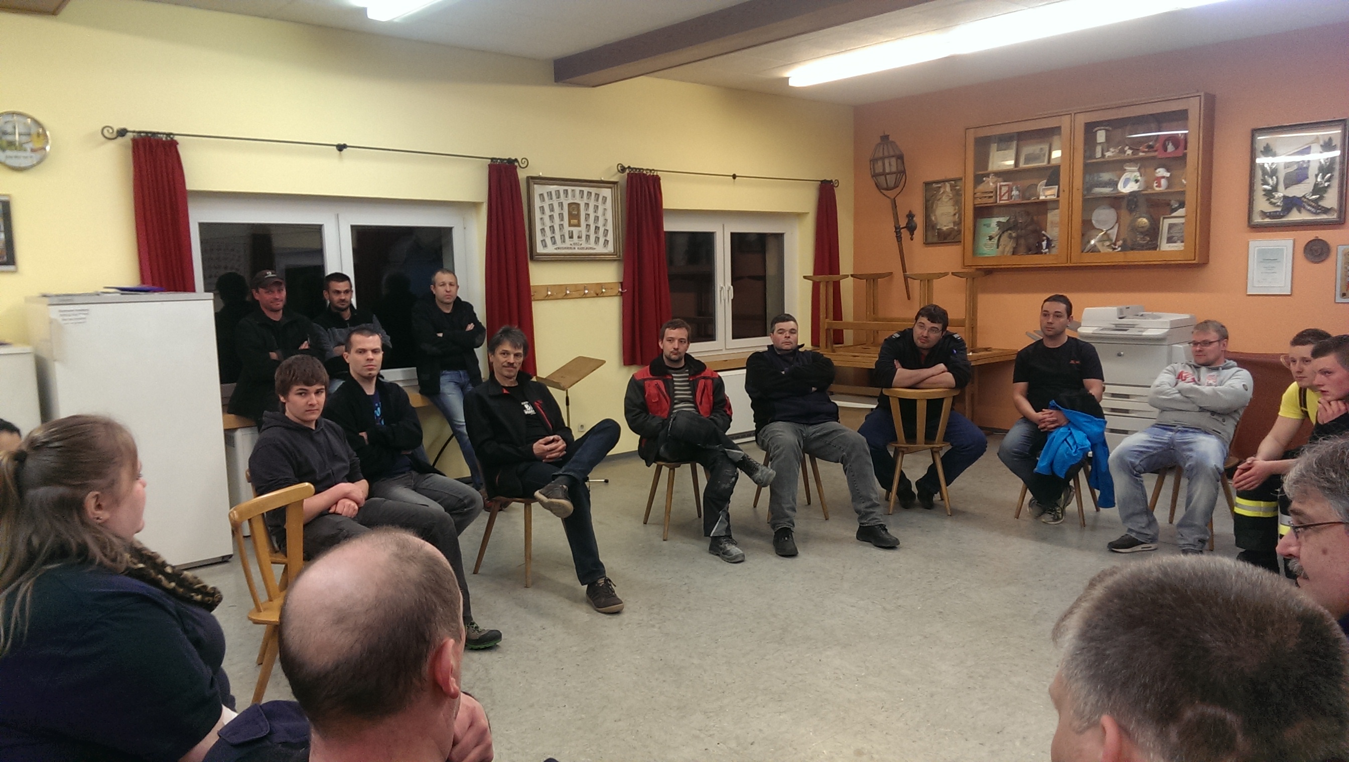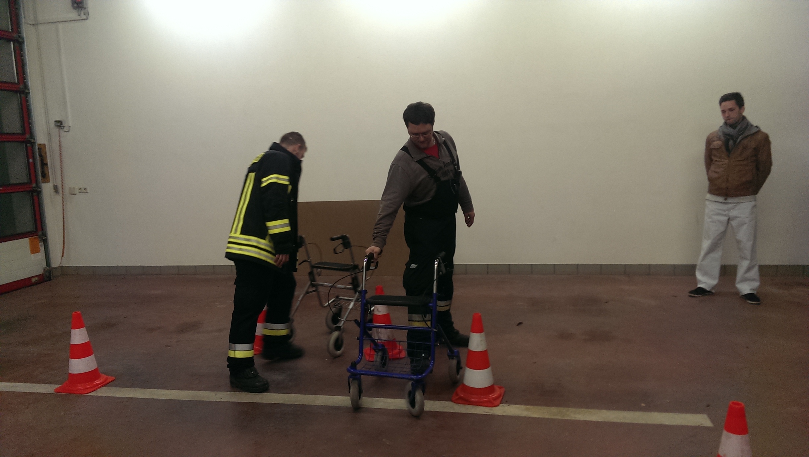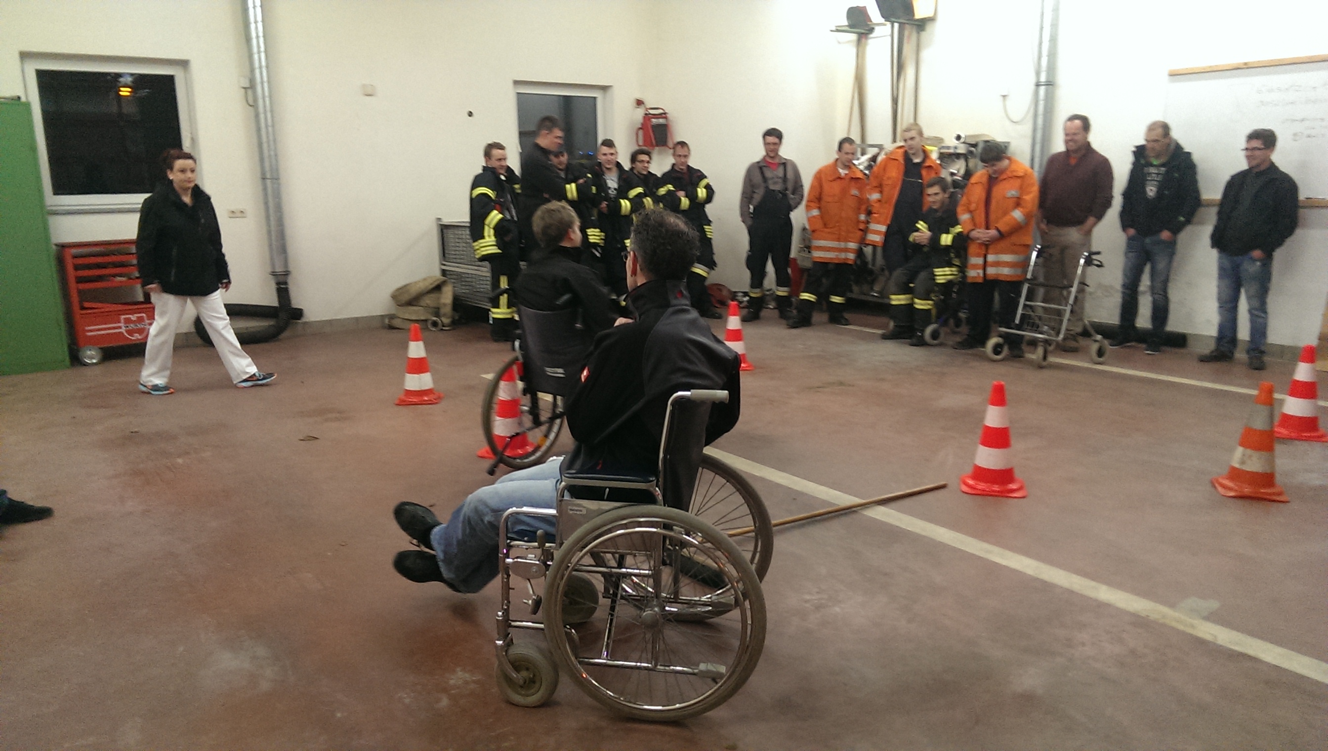 Am Mittwoch den 19.03.2014, starteten wir mit einer ganz speziellen Zugprobe des Ausrückebereichs West, die über zwei Abende gehen sollte. Am ersten Abend, den 19.03., führte uns die Pflegeheimleiterin Melanie Färber durch die Räumlichkeiten des Alten- und Pflegeheims in Kadelburg. Anschließend ging diese Probe mit einem theoretischen Teil in unserem Magazin weiter. Frau Färber und ihr Team erklärten in einem Vortrag, was für Erkrankungen im Pflegeheim gängig sind, und wie man mit diesen Personen umzugehen hat. Weiter lernten wir bei einem Selbstversuch den richtigen Umgang mit Personen an Gehhilfen, Rollatoren und in Rollstühlen. Frau Färber hatte dazu einen Parkour aufgebaut.