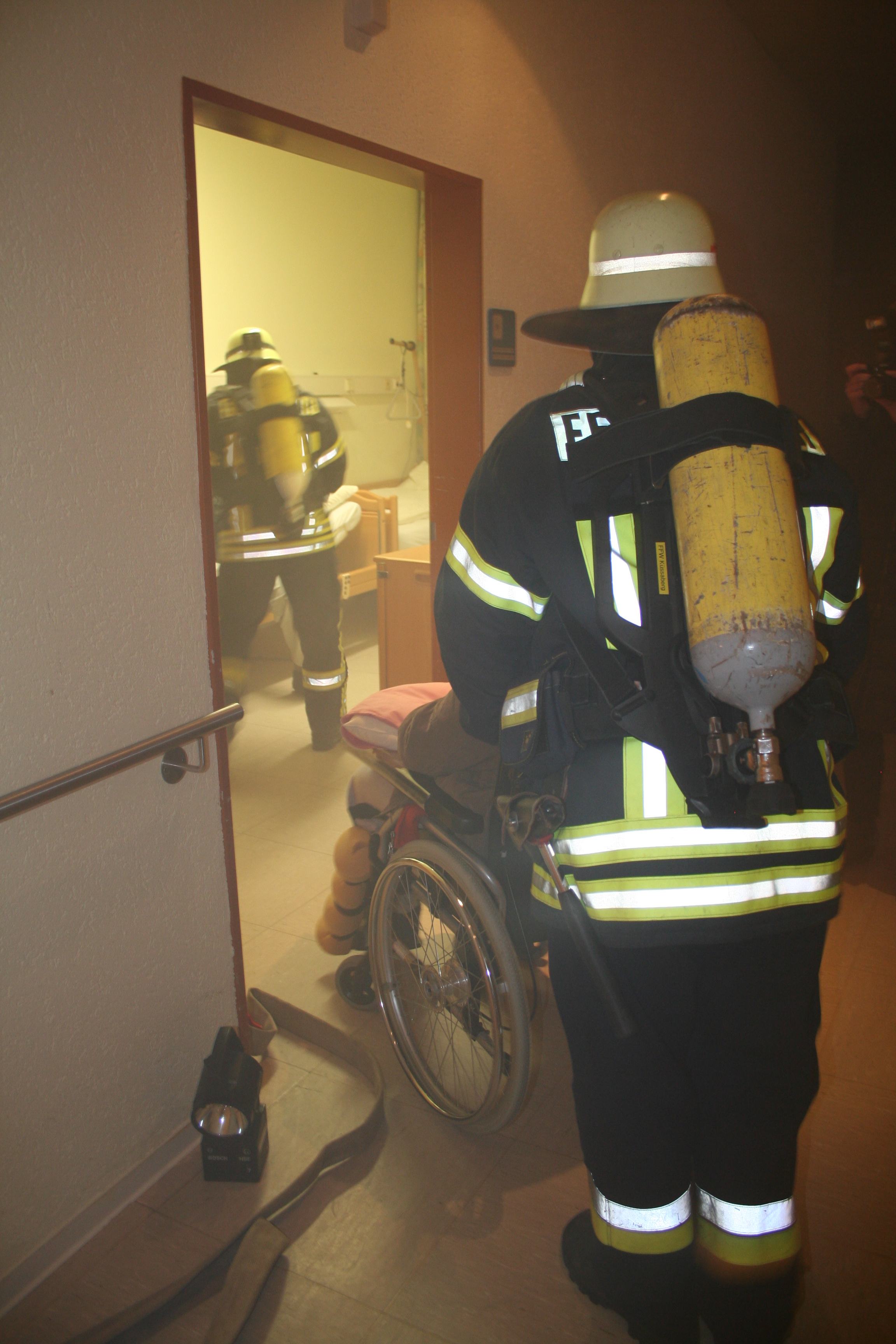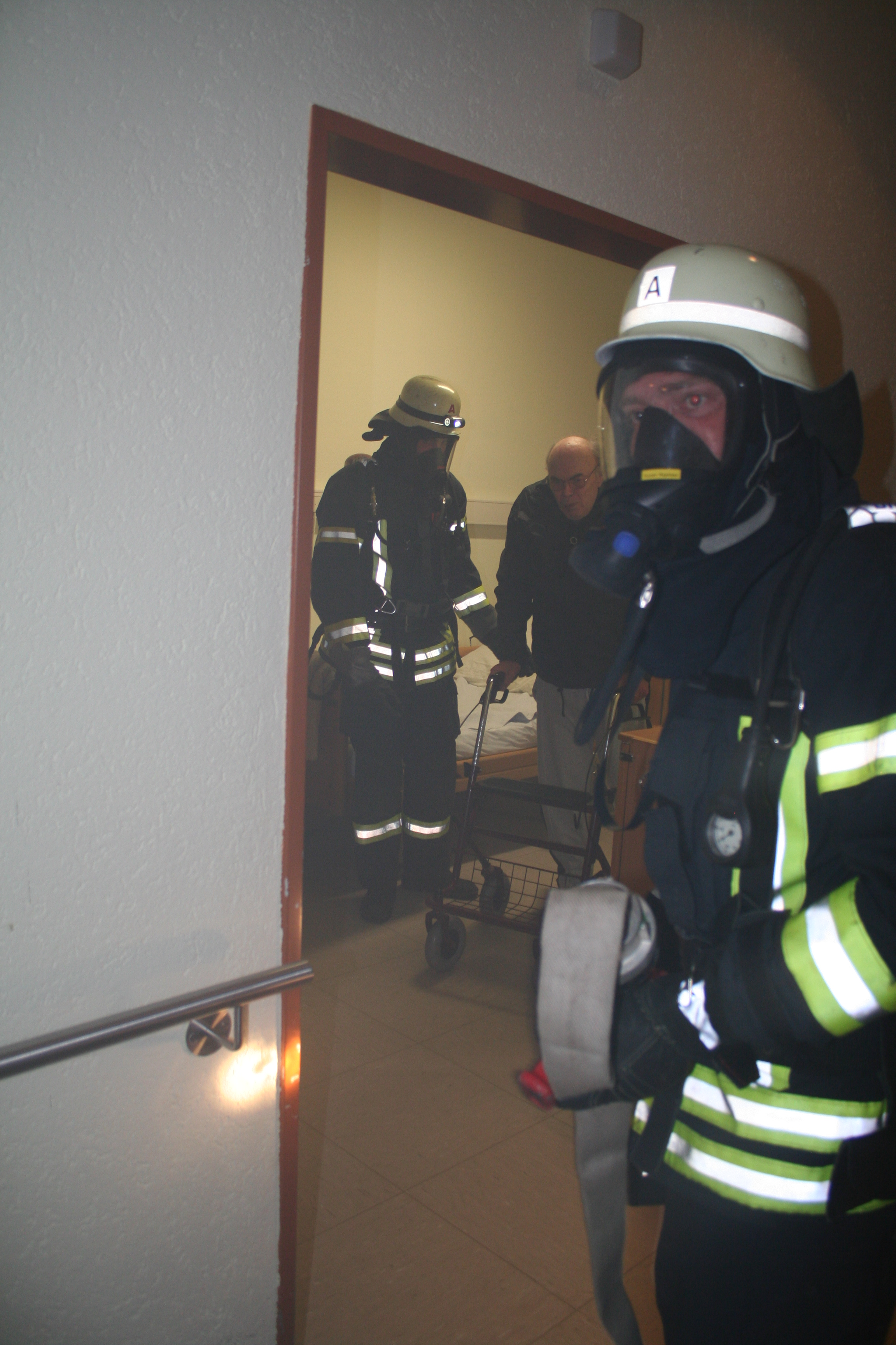 Auch für die Feuerwehrkameraden waren diese Proben sehr interessant, da viele der jungen Kameraden die Örtlichkeiten des Alten- und Pflegeheimes noch nicht gekannt haben und Berührungsängste abgebaut werden konnten.