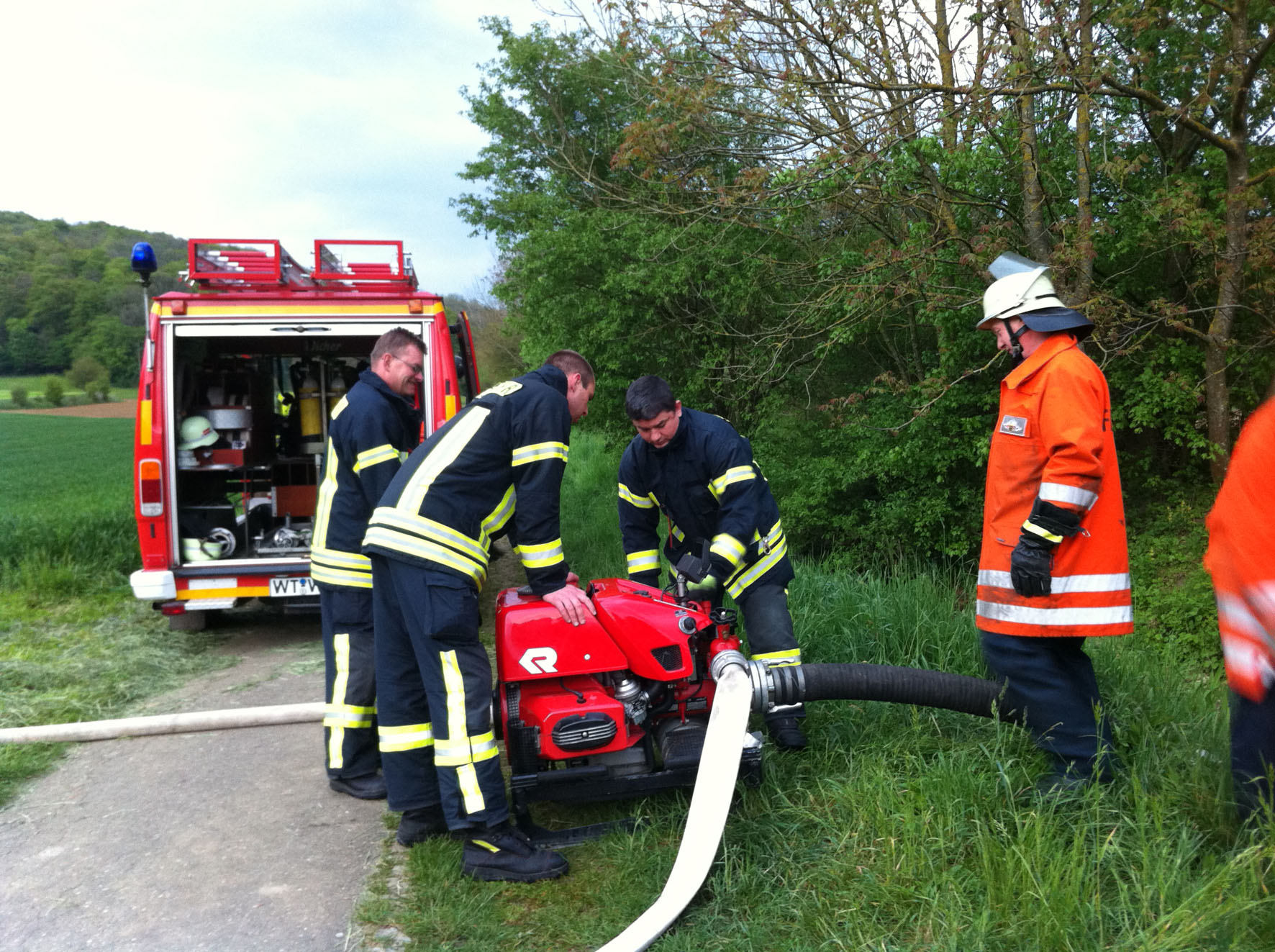 Am 25. April fand die erste Maschinistenübung für den Ausrückebereich Ost statt. An zwei Stationen konnten die Kameraden aus Dangstetten und Bechtersbohl ihre Kenntnisse über die richtige Bedienung von verschiedenen Pumpen auffrischen. Ebenso wurde die Wasserentnahme aus offenen Gewässern geübt, sowie der reibungslose Wechsel der Wasserentnahme von Tank- auf Hydrantenbetrieb. Den Abschluss bildete eine kurze Einführung zum Thema „Löschen mit Schaum“. Die kurzweilige Probe fand bei den Teilnehmern guten Anklang, und endete mit einem gemütlichen Hock im Dangstetter Gerätehaus.