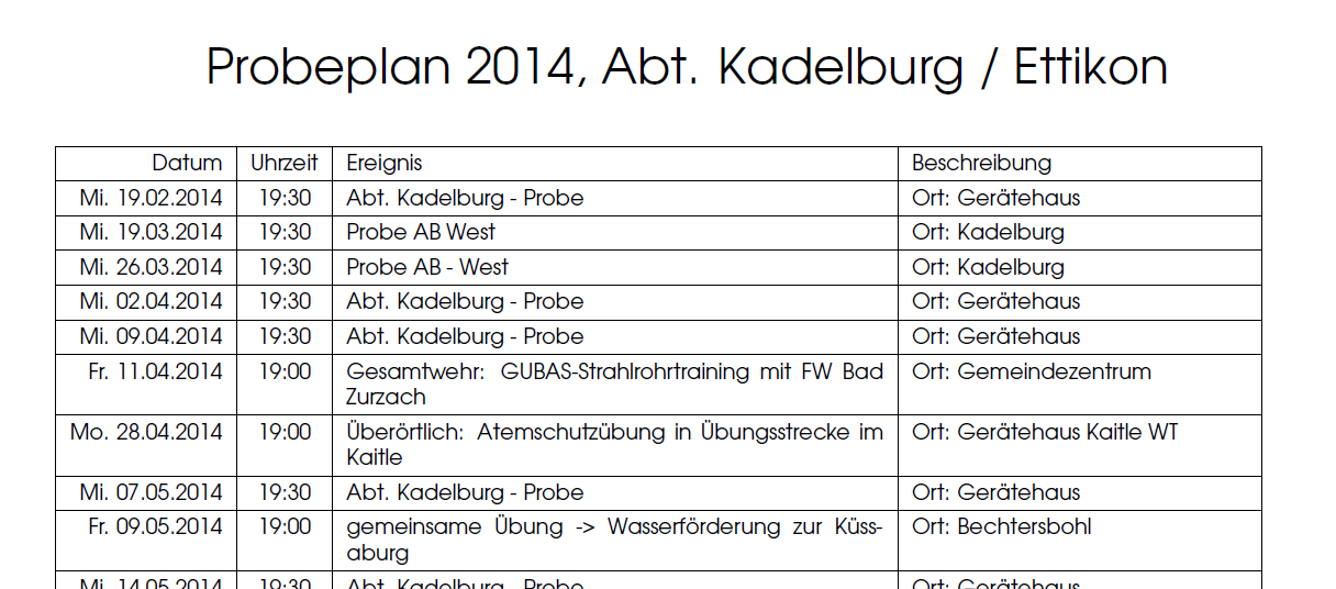 Neu kann der Probenplan jeder Abteilung per PDF herunter geladen werden. zb der Abteilung Kadelburg