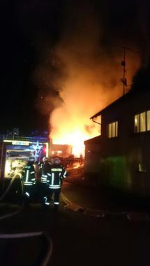 Durch mehrere Rohre im Außenangriff und der Drehleiter aus Klettgau konnte nach Mitternacht "Feuer aus" gemeldet werden. Eine Brandwache hat bis 9.30 Uhr die Einsatzstelle immer wieder kontrolliert.