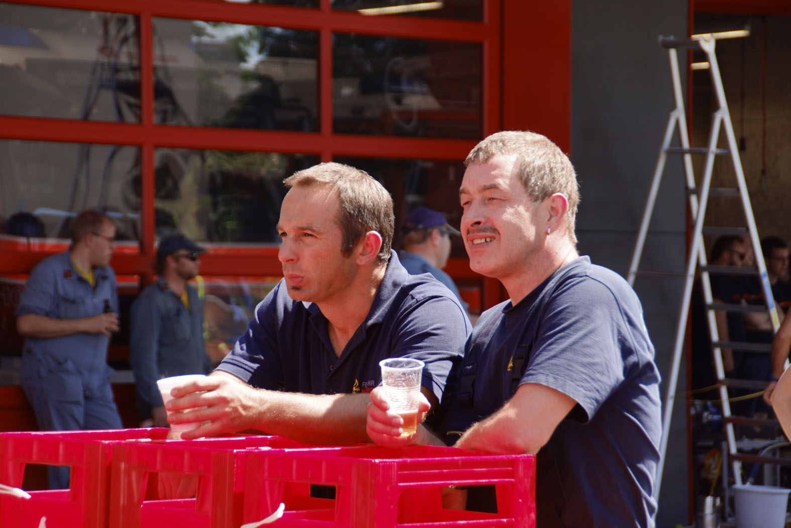 Am Samstag besuchten 17 Kameraden unsere Partnerfeuerwehr in Küssnacht / Rigi (CH), die ihren alljährlichen Plauschwettkampf ausrichteten. Bei strahlendem Sonnenschein absolvierten wir mehr oder weniger nassgespritzt ausgeklügelte Aufgaben wie Bierkistenstapeln, Minigolf , bei dem ein Tennisball mittels Eimerspritzen fortbewegt werden musste oder das Anheben einer Leiter per hydraulischem Gerät. Auch konnten wir unsere Geschicklichkeit beim Baggerführen unter Beweis stellen. Schlussendlich erreichten wir von 23 Gruppen den respektablen 9. und 4. Platz. Selbstverständlich kam auch der kameradschaftliche Teil nicht zu kurz, und Kontakte konnten gepflegt und geknüpft werden.