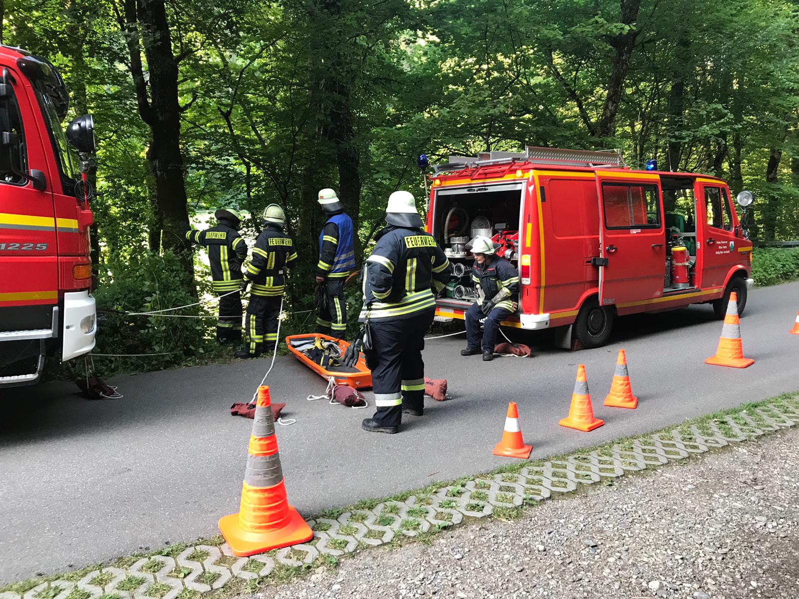 ... so lautete das Einsatzstichwort zur Übung der Abteilung Ost. An einem steilen, bewaldeten Hang mussten sich die Kameraden zuerst einen Zugang zur verunfallten Person schaffen, bevor diese über einen zweiten Rettungsweg zurück auf die Straße gebracht werden konnte. Schwerpunkte dieser Übung war der richtige Umgang mit den Gerätschaften zur Absturzsicherung, das sichere Bewegen in unwegsamen Gelände, eine patientenschonende Rettung mit Hilfe der Schleifkorbtrage und schließlich auch eine korrekte Einsatzstellenabsicherung auf stark befahrenen Straßen. Vielen Dank an unsere Kameraden M. Jehle für die Einweisung sowie K. Klauser und G. Roder für die Ausarbeitung dieser spannenden Probe!