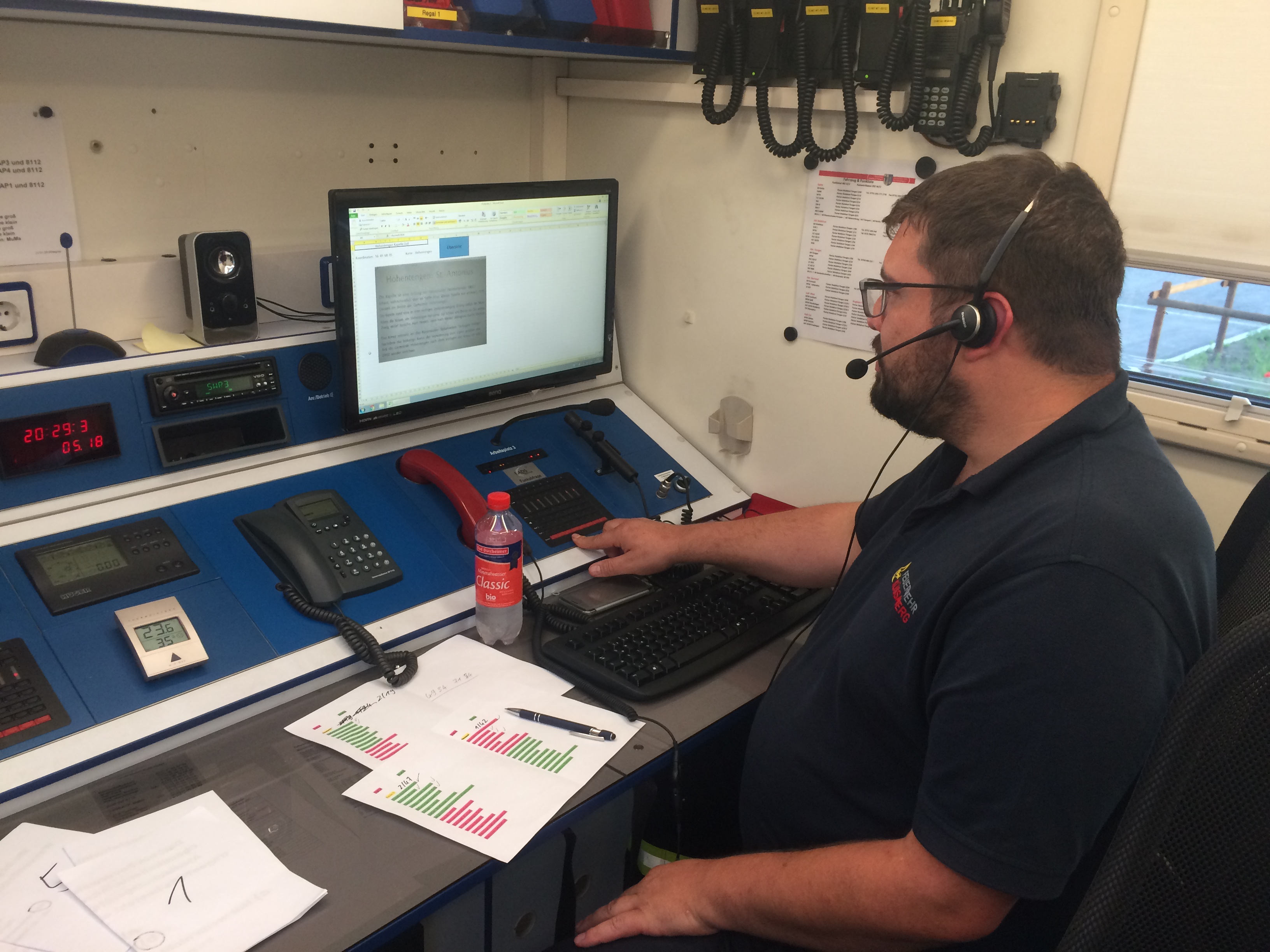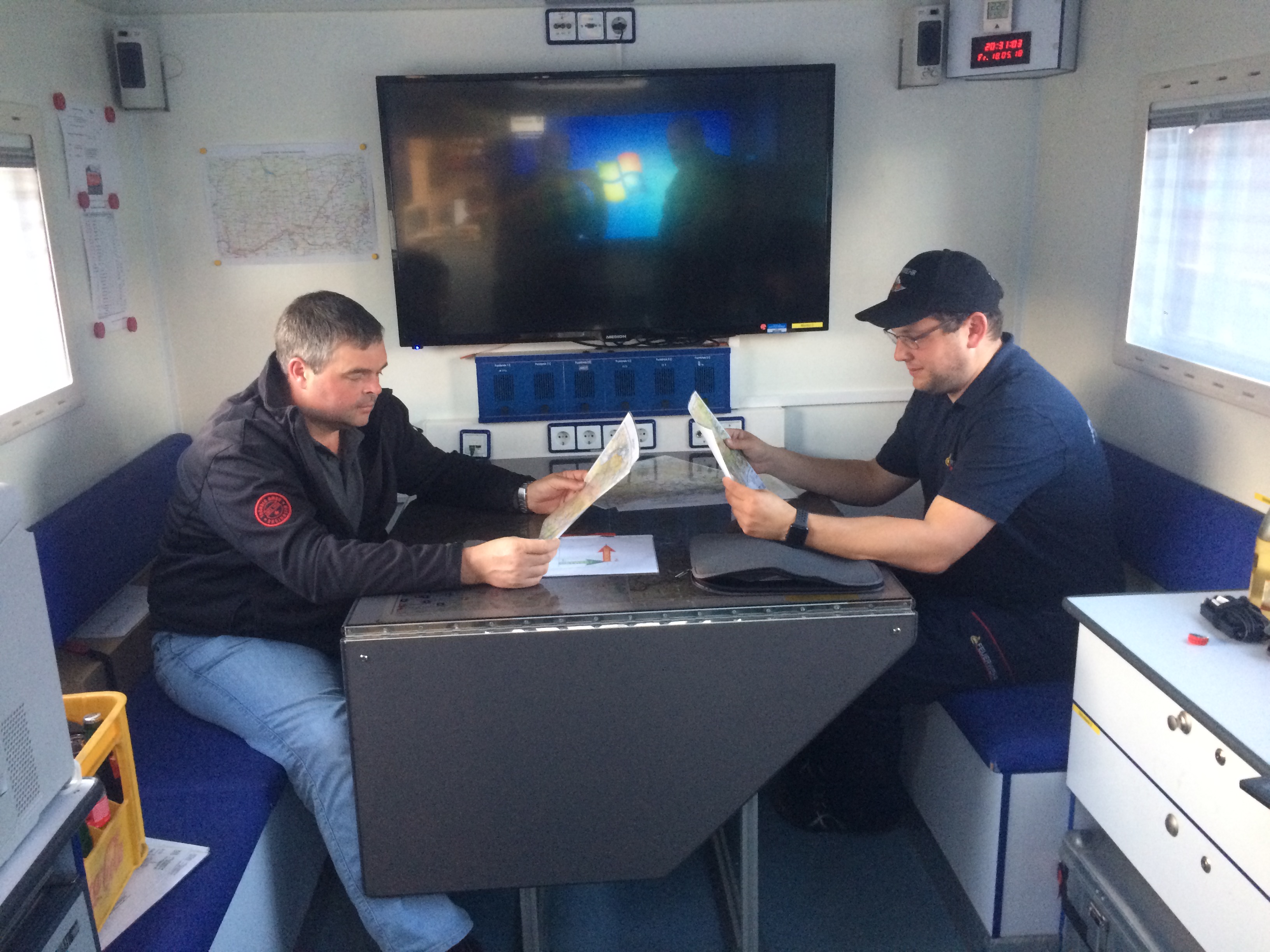 Die Zielpunkte mussten anhand von Koordinaten auf der Landkarte bestimmt und angefahren werden. Am Ziel angekommen, galt es für jede Gruppe eine Frage oder Aufgabe zu lösen. Wer das richtige Ergebnis über Funk mitteilte, erhielt die Koordinaten für seine nächste Station. Im Einsatzleitwagen des Landkreises Waldshut liefen alle Fäden zusammen. Heiko Weißenberger und Markus Wiener koordinierten hier sämtliche Fahrzeuge sowie die Aufgabenstellungen an den einzelnen Stationen.