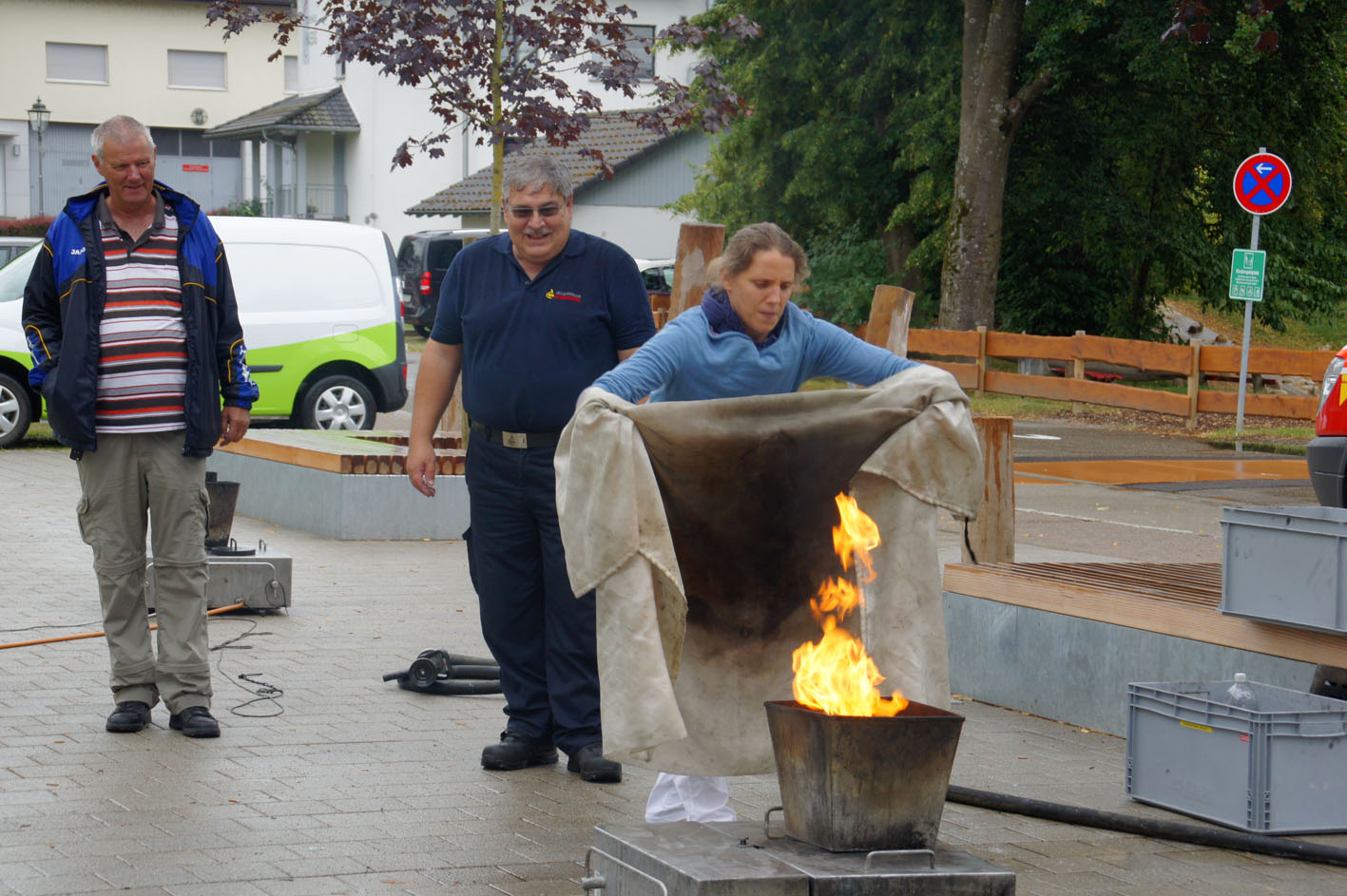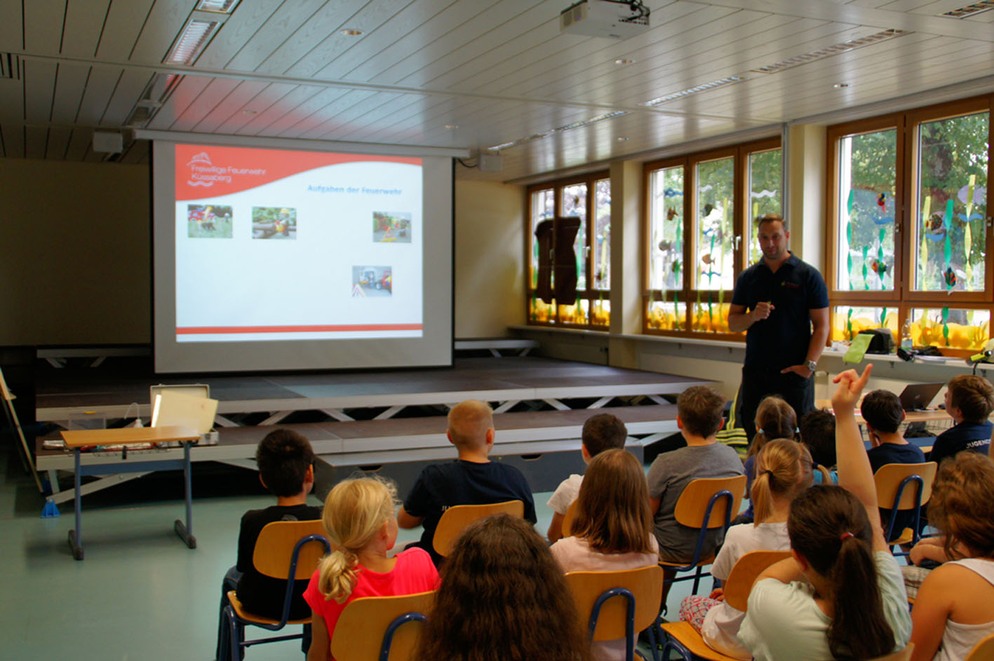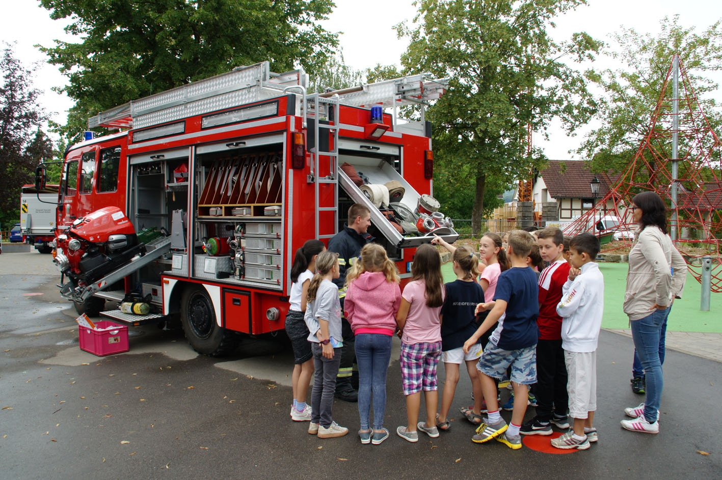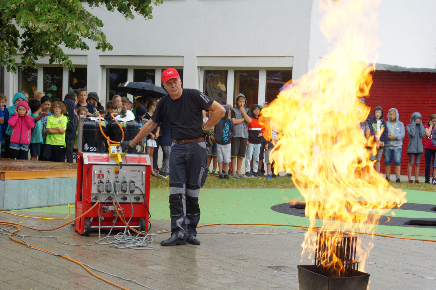 Das Highlight bildete allerdings der Teil mit den Feuerwehrkameraden aus Bad Zurzach, die lautstark Spraydosen zur Explosion brachten. Unter großem Applaus ihrer gesamten Schülerschaft durften abschließend auch die Lehrerinnen selbst Hand anlegen und den Umgang mit Löschdecke und Feuerlöscher üben. Alle Beteiligten, sowohl die Schüler und Lehrer von der Grundschule als auch die Feuerwehrausbilder, hatten großen Spaß an diesem Tag.