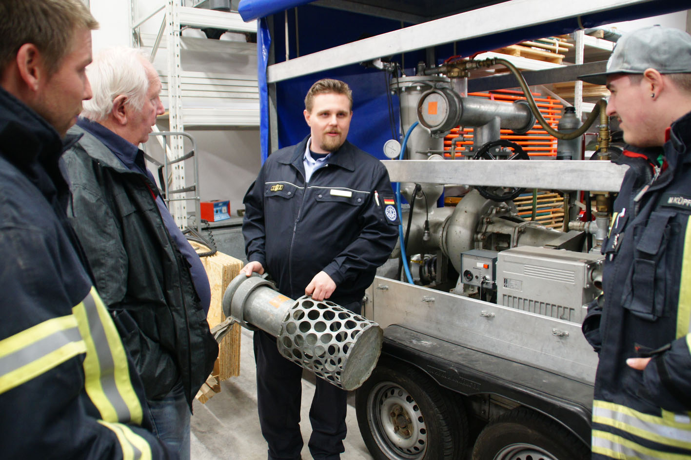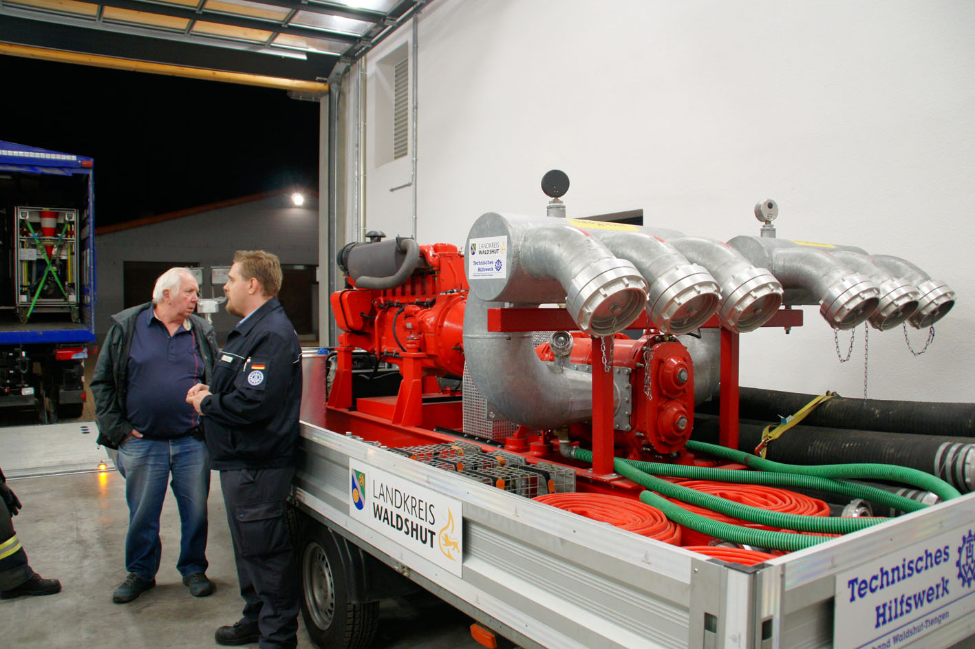 Am 24. März 2017 besuchten 11 Kameraden unserer Wehr das THW des OV Waldshut-Tiengen im Kaitle. In einem kurzweiligen Vortrag erklärten uns die Ortsbeauftragten Christian Hipp und Alexander Schmidt die Organisation, Aufbau und Einsatzgebiete des THW im Allgemeinen und speziell für den Standort im Kaitle vor. Anschließend durften wir noch die Räumlichkeiten, Fahrzeuge, Anhänger und Ausrüstungen genau unter die Lupe nehmen, dabei waren besonders der eigens umgebaute, 10 m hohe Lichtmast und die Schmutzwasserpumpen mit Förderleistungen von 5.000 bzw. 10.000 Liter/min die Highlights. Beim Umtrunk ließen die Kameraden beider Organisationen den Abend noch ausklingen. Vielen Dank an Christian und Alexander für den interessanten Abend und die kameradschaftliche Begegnung.