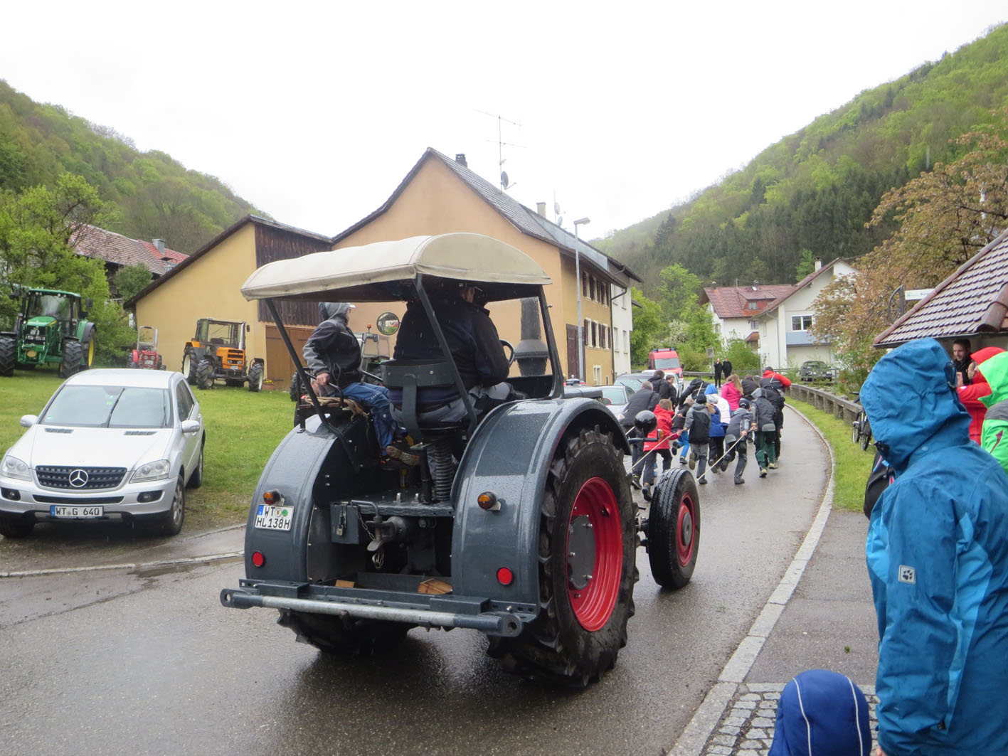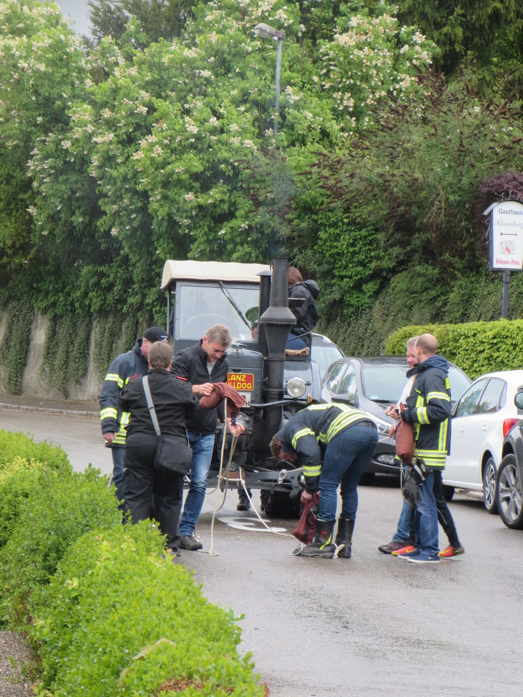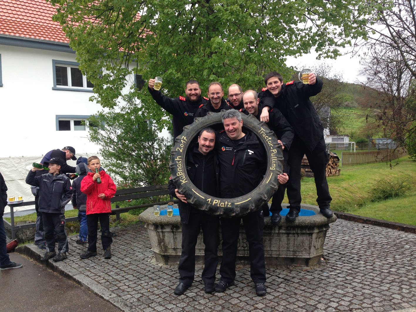 Dem Wetter zum Trotz freuten sich die Küβnacher über die vielen Besucher am 1. Maihock. «Viele Stammgäste schätzen einfach die Qualität unserer Festküche mit Fleisch vom örtlichen Hofladen, selbstgemachtem Kartoffelsalat, Küβnacher Bärlauchbutter und das Bier vom Fass. Nicht zu vergessen die grosse Auswahl an Kuchen in der Kaffeestube der Landfrauen» sagte Florian Angstmann, Kommandant der Feuerwehr Küβnach. So fand man unter den Gästen dann auch nicht nur viele Bürger und Vertreter der Gemeinde Küssaberg, wie zum Beispiel Herrn Bürgermeister Weber mit seiner Frau, sondern auch viele Besucher aus umliegenden Gemeinden wie auch aus der Schweizerischen Partnergemeinde Küssnacht am Rigi. Zum ersten mal wurde der Wettbewerb im «Tractor-Pulling» durchgeführt, den die Feuerwehr aus der Partnergemeinde für sich entscheiden konnte. Die spontan gebildete Jugendgruppe aus Dangstetten schaffte fast die gleiche Strecke wie die «Grossen» und erhielt dafür einen Sonderpreis.