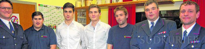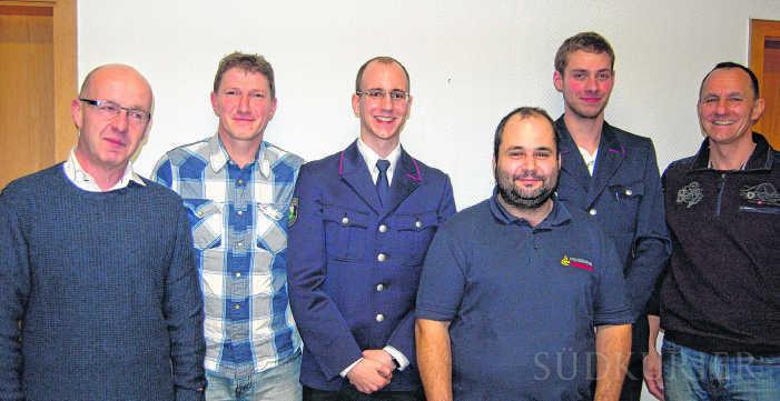 Sie setzen sich für die Feuerwehr und ein schönes Dorfleben in Küßnach ein: von links Robert Habermann, Christian Bürck, Florian Angstmann, Roland Leitner, Denis Leiter und Bruno Angstmann, die neben einem straffen Feuerwehrprogramm auch ein Maifestjubiläum auf der Agenda 2016 haben. | Bild: Liselotte NothEinwohnermäßig ist Küßnach der kleinste Ortsteil, aber mit einer ehrenamtsfreudigen Bevölkerung. 19 Aktive, darunter eine Frau, gehören der Feuerwehrabteilung an. Neben der Sicherheit für die Bevölkerung sorgen sie zudem mit den Landfrauen zusammen für ein schönes Dorfleben. So steht neben einem straffen Feuerwehrdienstprogramm auch ein Dorffest zum 30-jährigen Bestehen des Maifests auf der Agenda 2016. Küßnachs Feuerwehr, das war den Ausführungen des Abteilungsleiters Florian Angstmann in der Hauptversammlung zu entnehmen, will sich seine Eigenständigkeit erhalten, gleichzeitig aber auch eine enge Zusammenarbeit mit den Feuerwehren Bechtersbohl und Dangstetten im Zug Ost pflegen. „Sie liegt schon in unserem Interesse, da wir uns insbesondere durch unseren Mannschaftsstand als wichtigen Teil dieses Verbunds sehen und wir in einer aktiven Zusammenarbeit wichtige Aufgaben übernehmen können.“ Angstmann lobte die hohe Probenmoral und die Bereitschaft seiner Kameraden zu Aus- und Fortbildungen. Proben fanden neben dem Zug Ost auch mit der Gesamtfeuerwehr Küssaberg statt. Brandangriff und Atemschutz wurden an mehreren Gebäuden im Dorf geübt. „Wir stellen fest, dass die hohe Ortskenntnis der Kameraden einen entscheidenden Vorteil im Ernstfall bringen kann“, so Angstmann. Zwei Einsätze standen 2015 für die Küßnacher Feuerwehrmänner an, beide auswärts in Kadelburg und Rheinheim. Gesamtkommandant Thomas Werner lobte die Küßnacher Feuerwehr als eine starke Abteilung auch im Zug Ost. Bürgermeister Manfred Weber ermunterte die Kameraden, dieses Miteinander noch zu forcieren. „Letztendlich geht es um die Sicherheit der Bevölkerung“, erklärte Weber, der der Küßnacher Feuerwehr bescheinigt, eine wichtige Einrichtung, auch für das Dorfleben insgesamt zu sein. Für Bruno Angstmann das Stichwort. Er informierte über das geplante Jubiläumsfest mit Live-Band aus Anlass des 30. Maifestes. Auch die Feuerwehr der Schweizer Partnergemeinde Küssnacht am Rigi werde dabei sein. Und Küßnachs Feuerwehr macht sich adrett: „Wir gönnen uns einen neuen Look mit einheitlichen T-Shirts und Jacken“, kündigt Bruno Angstmann an und kann schon auf Sponsoren verweisen.
