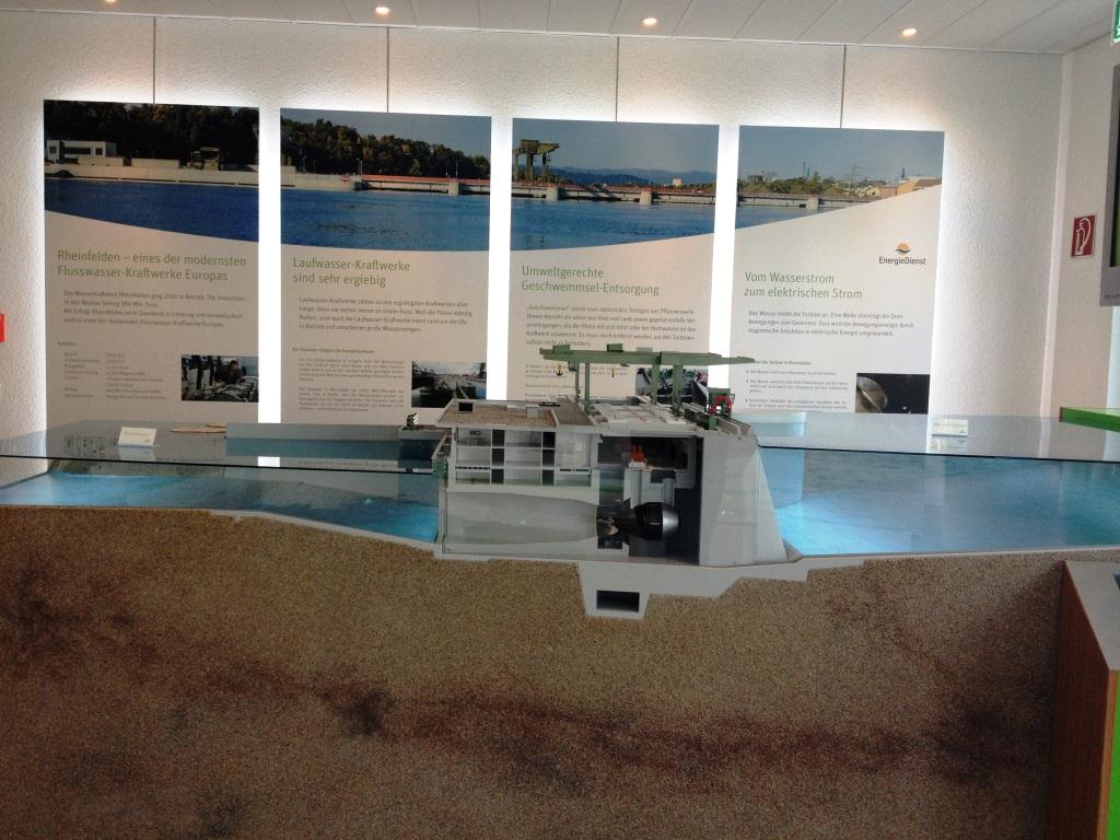 Das neu erbaute Wasserkraftwerk in Rheinfelden war das Ziel der Altersabteilung am 11. Juli 2012. Mit zwei vollbeladenen MTW’s ging es auf der Schweizer Seite nach Rheinfelden-Möhlin, wo wir im neuen Informationszentrum der KW Rheinfelden von zwei Besucherführern, Herr Gaier und Frau Brüstle, sehr freundlich empfangen wurden. Im Info-Center wurde uns zunächst ein Film über die Bauphasen des Werkes gezeigt, bevor an Gross-Modellen die Art und Funktionsweise der Turbinen demonstriert wurde.