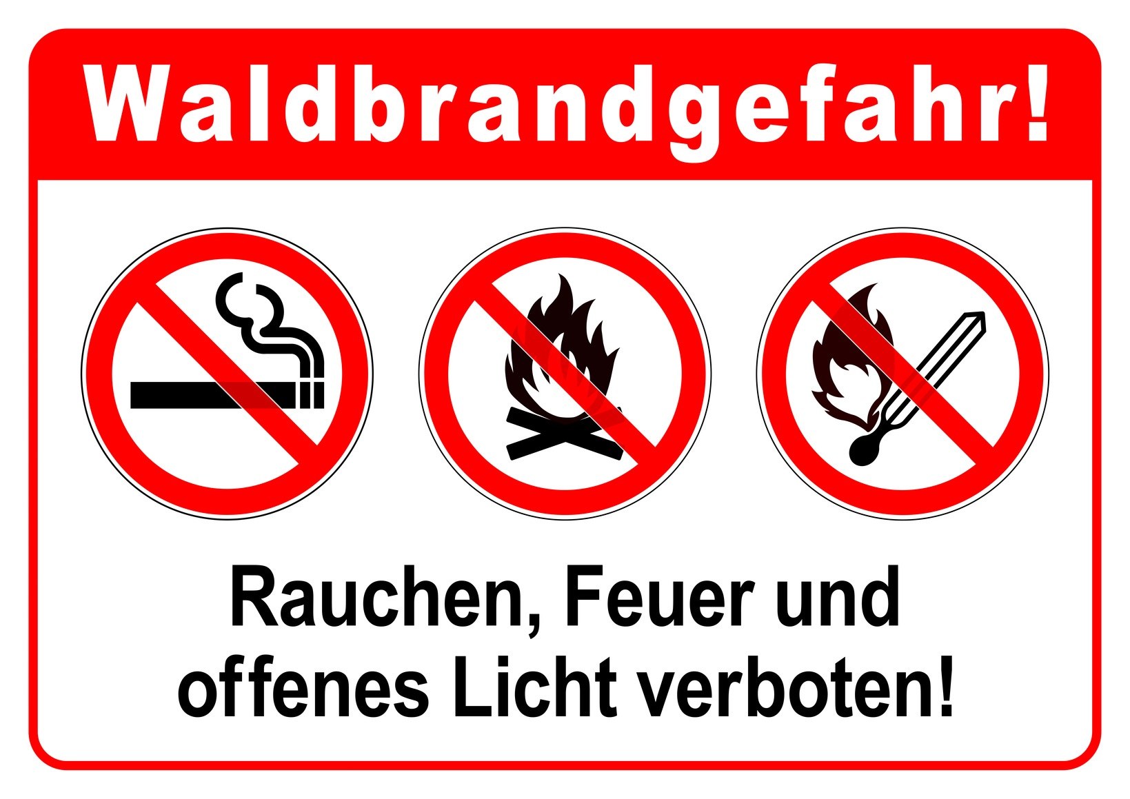 • Kein offenes Feuer im Wald oder in Waldnähe, außer an hierzu ausdrücklich ausgewiesenen Plätzen!